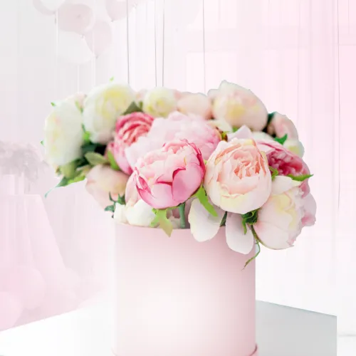 - Упаковка и декор. Стоимость включает работу флориста и используемые материалы: крафтовую бумагу, матовую пленку, шляпные коробки или плетеные корзины.