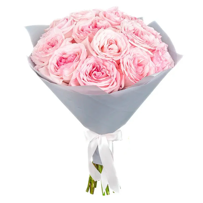 Пионовидные розы, упаковка, лента |
