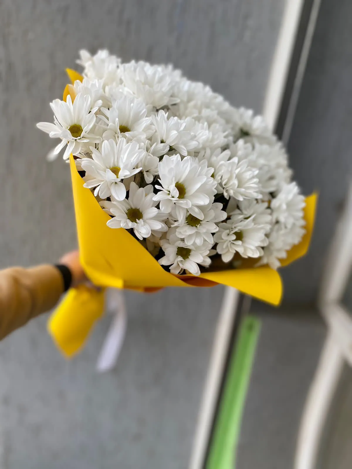 Белые кустовые хризантемы,упаковка,лента |