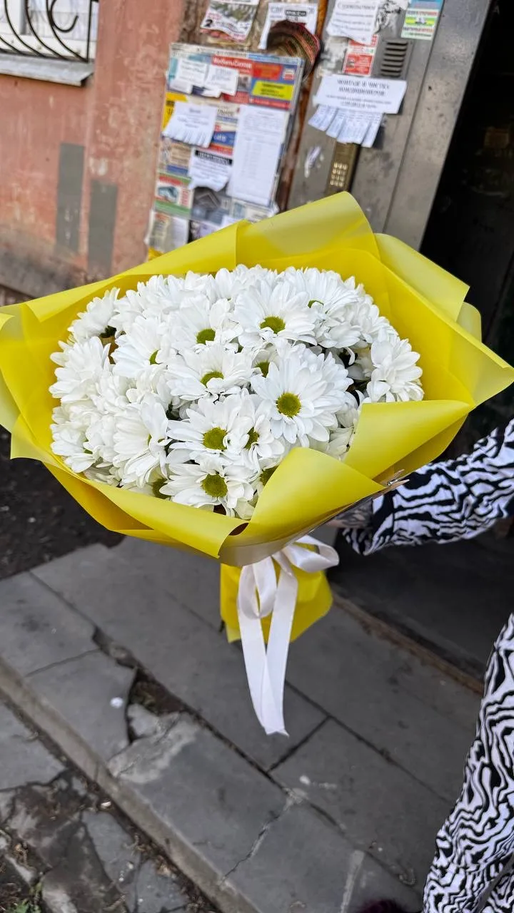 Букетом из белых ромашковых хризантем вы всегда сможете порадовать любимого человека. В любое время года этот букет принесет весеннее настроение. Легкость и приятные чувства обеспечены.