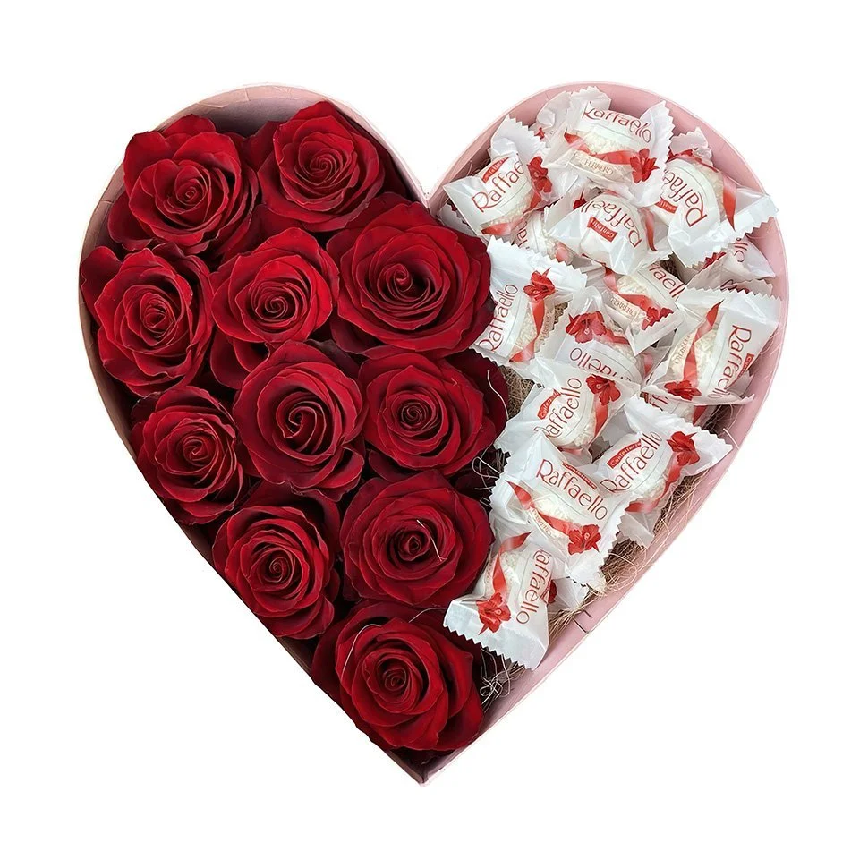 - Стандарт - роза - 11 шт., Рафаэлло, коробка, оазис