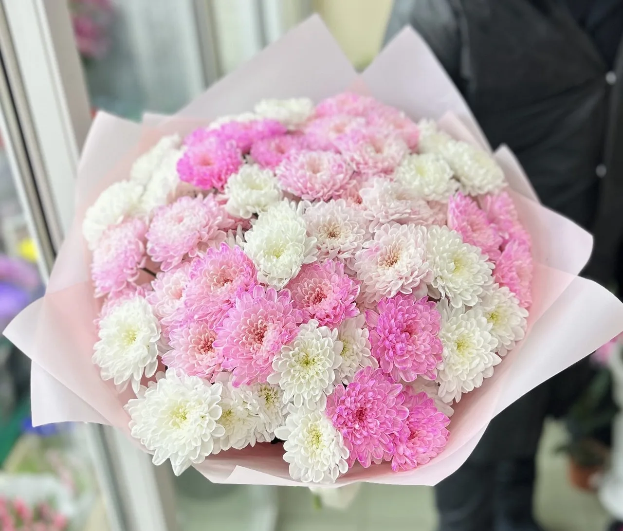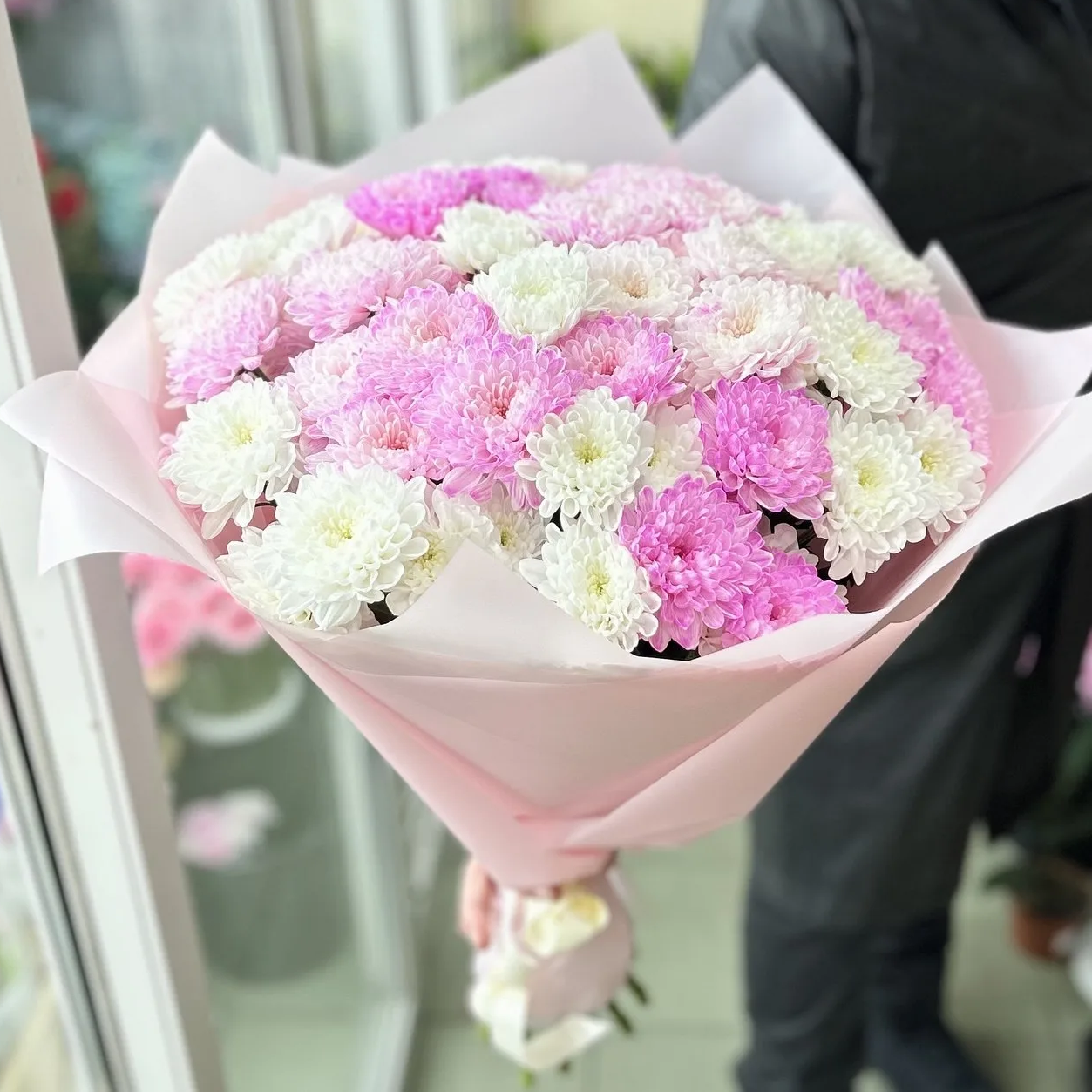 Кустовые хризантемы,упаковка,лента