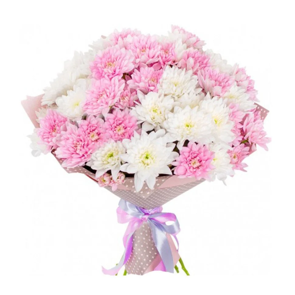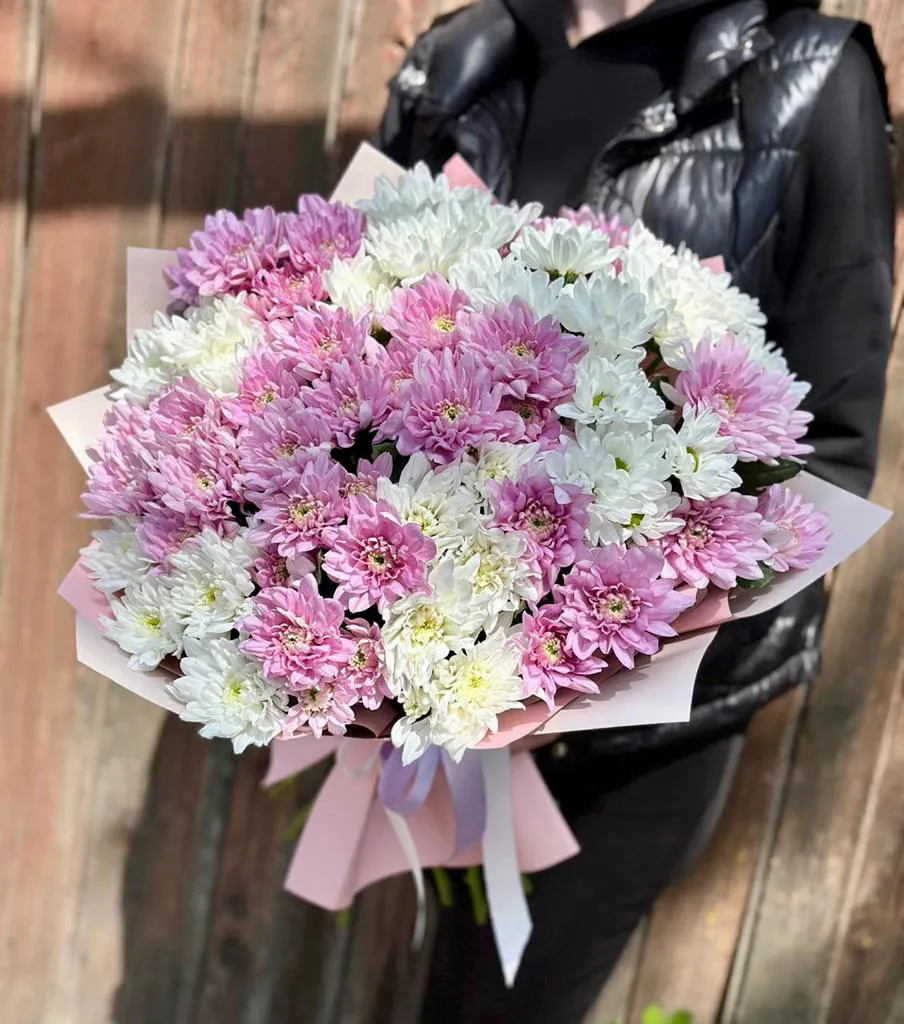 - Делюкс - кустовая хризантема - 15 шт., упаковка, лента