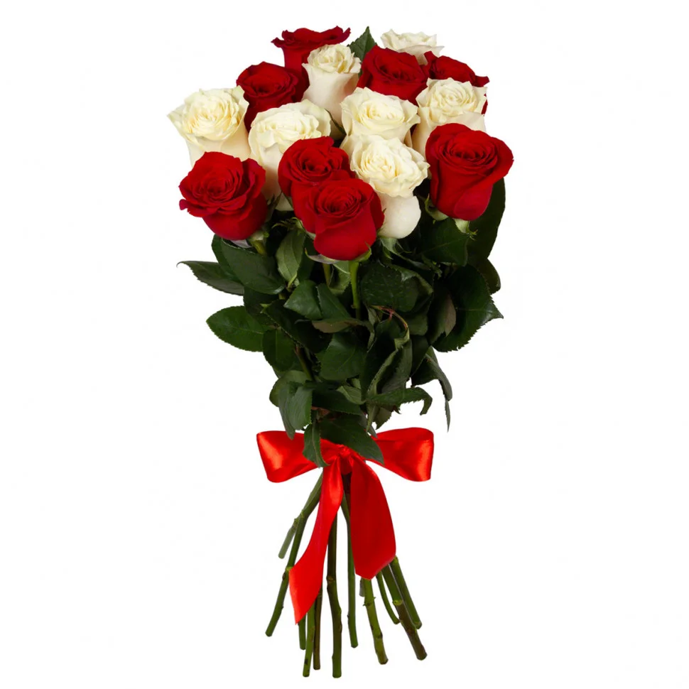 Одноголовые розы - красные и белые,лента |