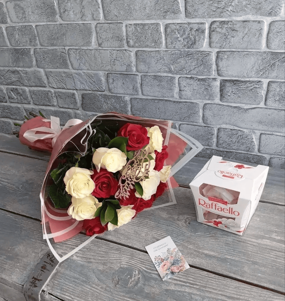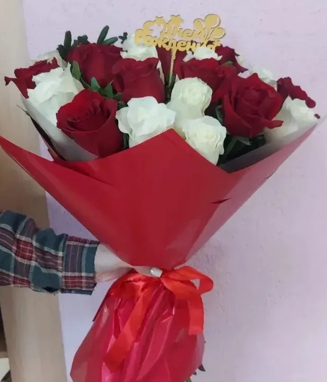 Букет из красных и белых роз День Рождения