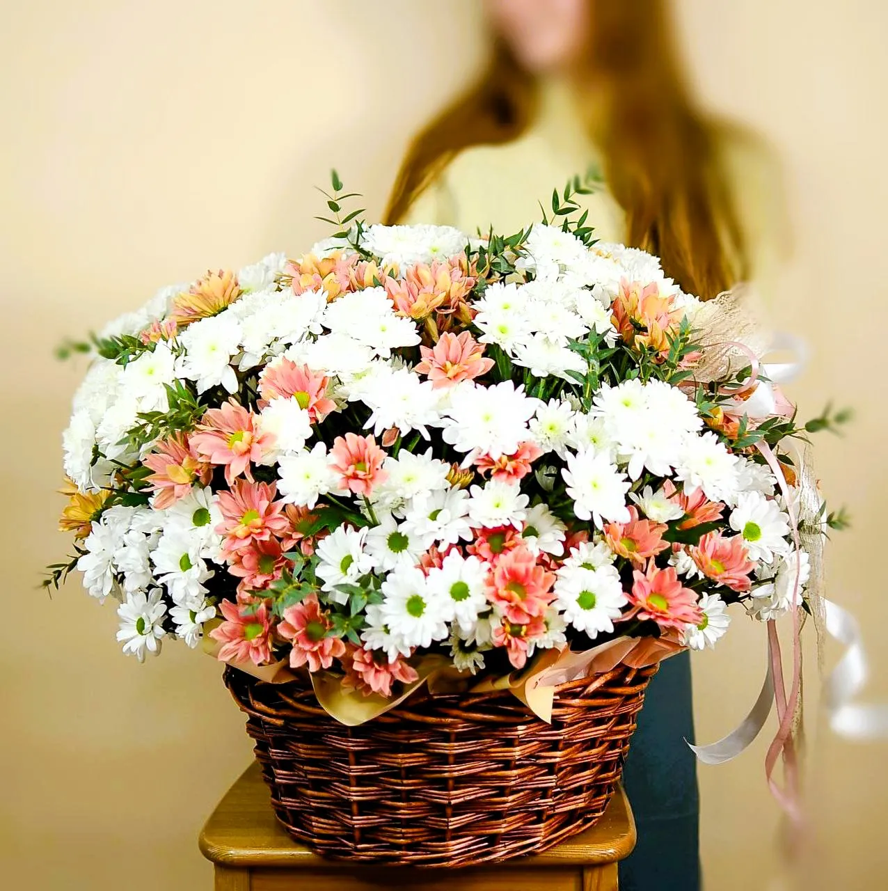 Порадуйте своих родных и близких, выбрав корзину с кустовыми хризантемами, которая, несомненно, принесет радость и хорошее настроение.