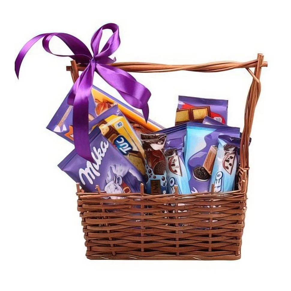 Корзина сладостей (шоколад ТМ "Milka", печенье ТМ "Tuc", ТМ "Oreo"). |