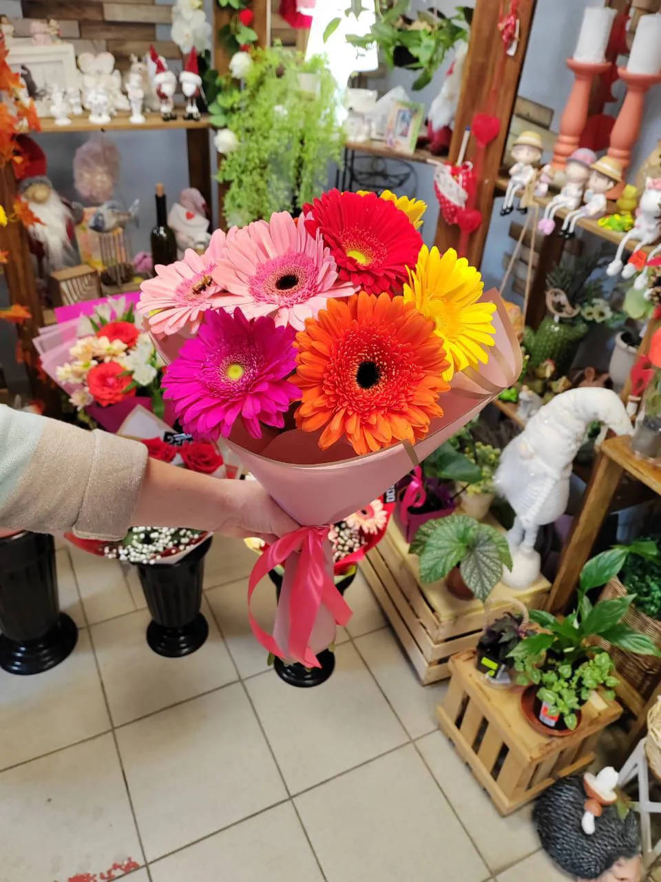 - Стандарт - гербера - 5 шт., упаковка, лента
