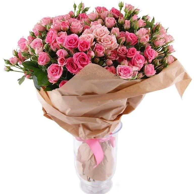 Кустовая роза, упаковка, лента |