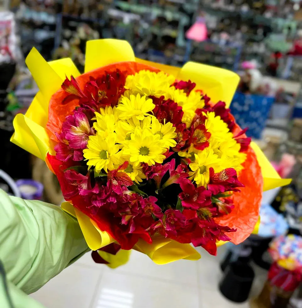 Подарите себе или своим близким этот великолепный букет из желтых хризантем и альстромерий, и вы увидите, как он изменит атмосферу вокруг! Не упустите возможность порадовать себя и своих близких яркими красками и свежими ароматами!