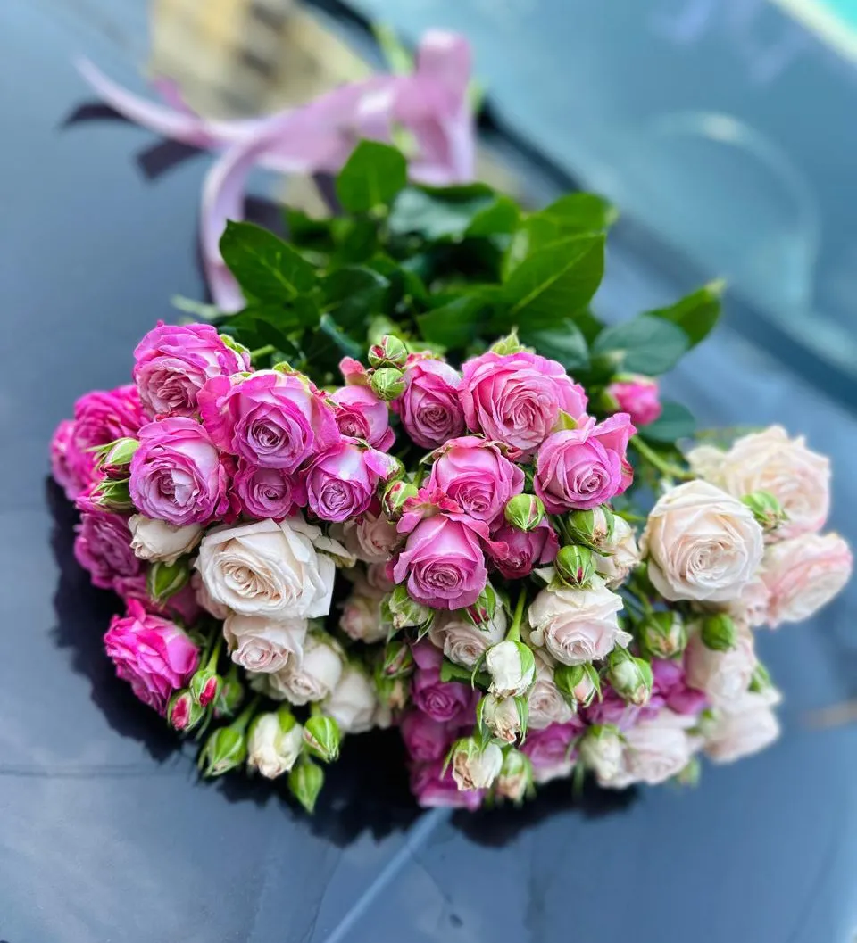 - Премиум - кустовая роза - 9 шт.,лента
