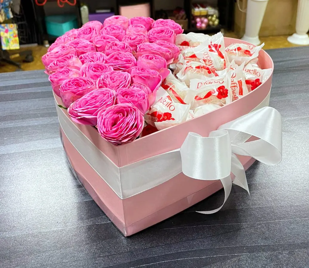 - Стандарт - роза - 11 шт., Рафаэлло, коробка, оазис