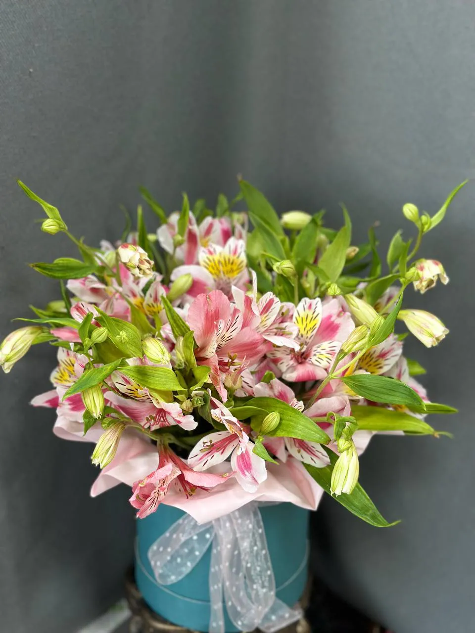 - Премиум - альстромерия - 29 шт., оазис, шляпная коробка