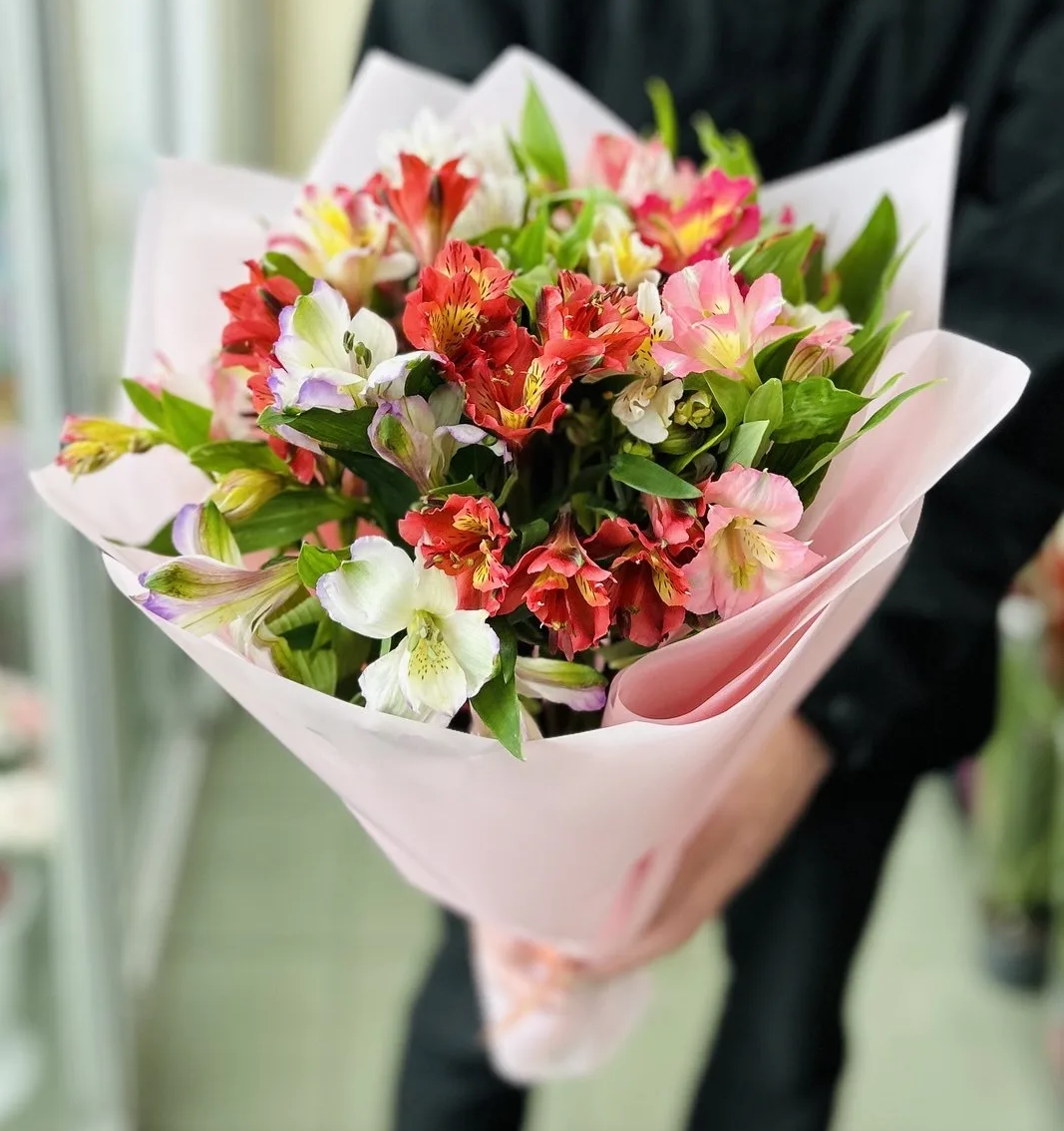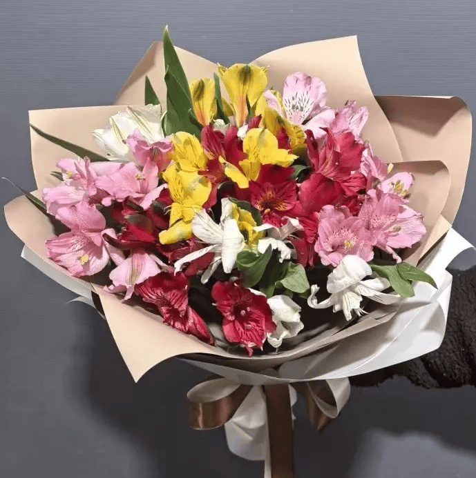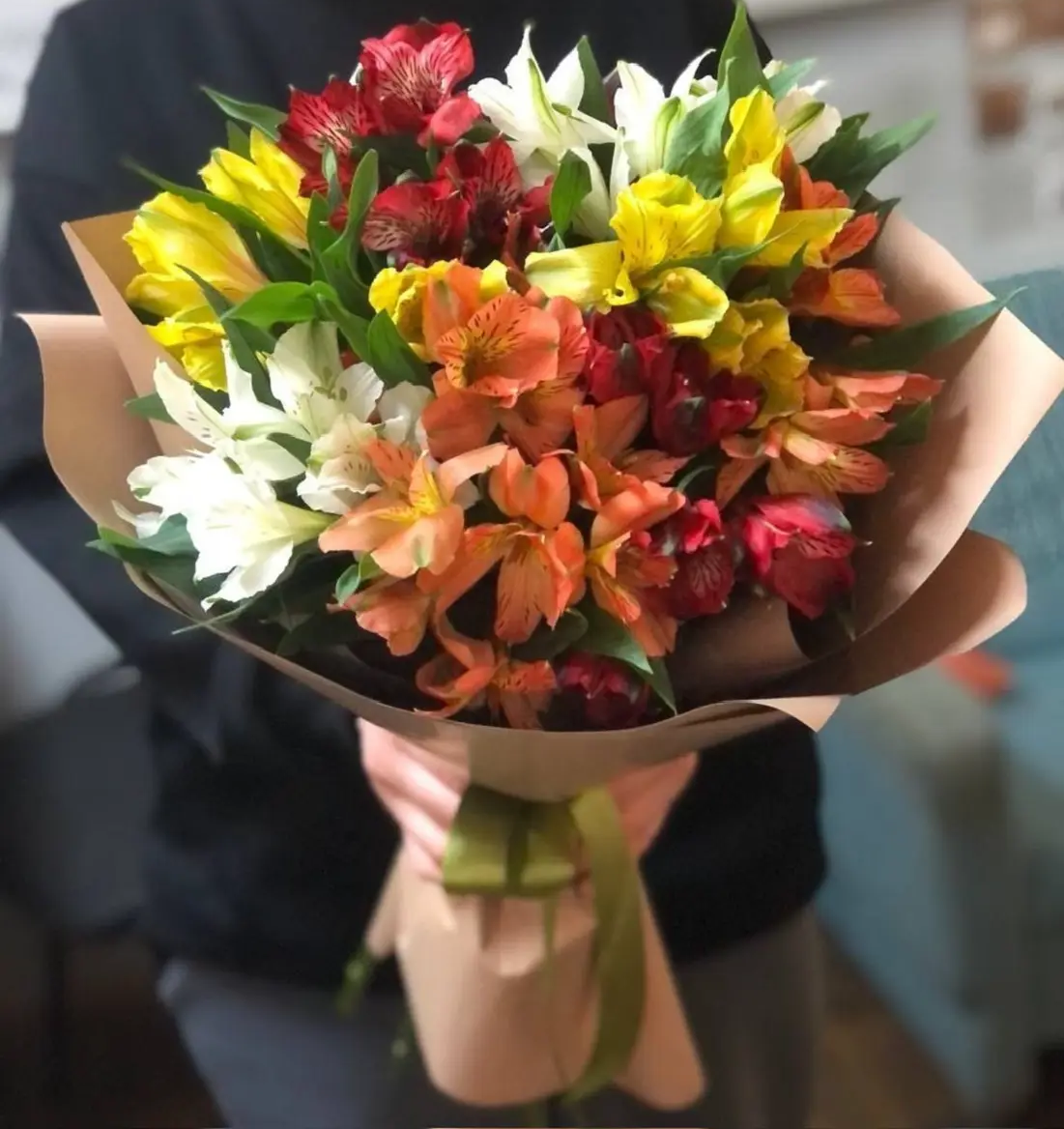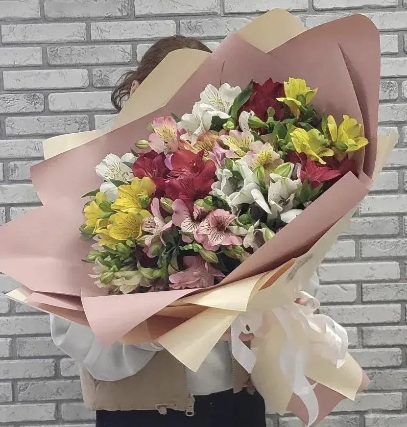 Этот яркий, сочный букет, состоящий из разноцветных альстромерий, передаст всю вашу теплоту и заботу !