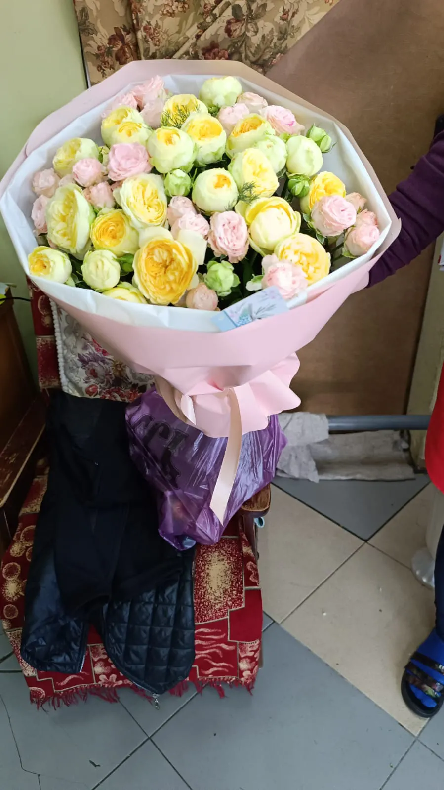 Пионовидные розы символизируют любовь, изящество и благородство чувств. Их роскошная форма и мягкие оттенки создают атмосферу праздника и радости, что делает такой букет идеальным подарком для самых трепетных моментов жизни — от романтических свиданий до торжественных событий.