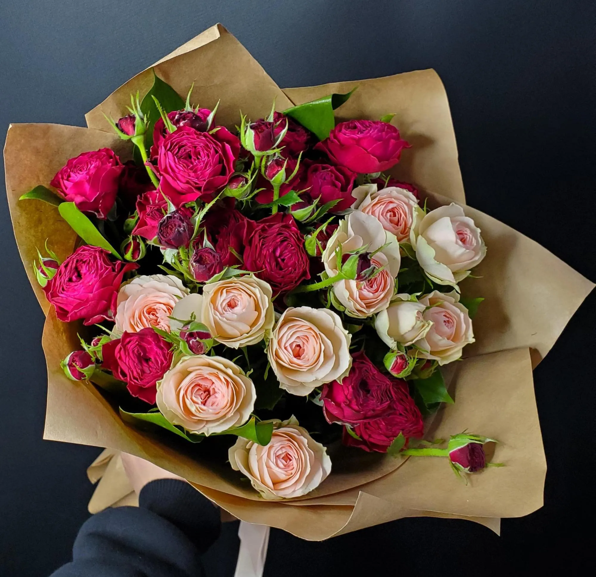 Кустовая роза, упаковка, лента |