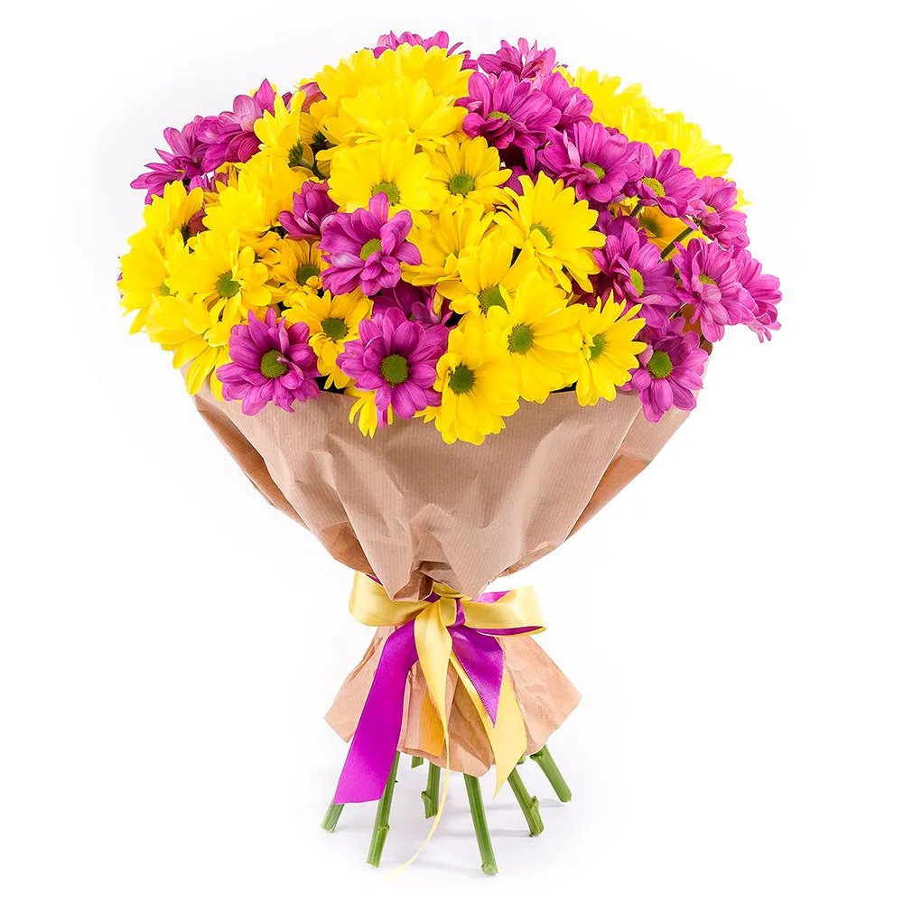 - Делюкс - кустовая хризантема - 15 шт., упаковка, лента